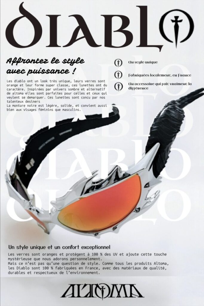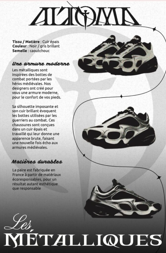 Ici, l’idée c’était de faire des fiches produits pour une marque fictive ALTOMA. Voici trois produits que j’ai imaginé