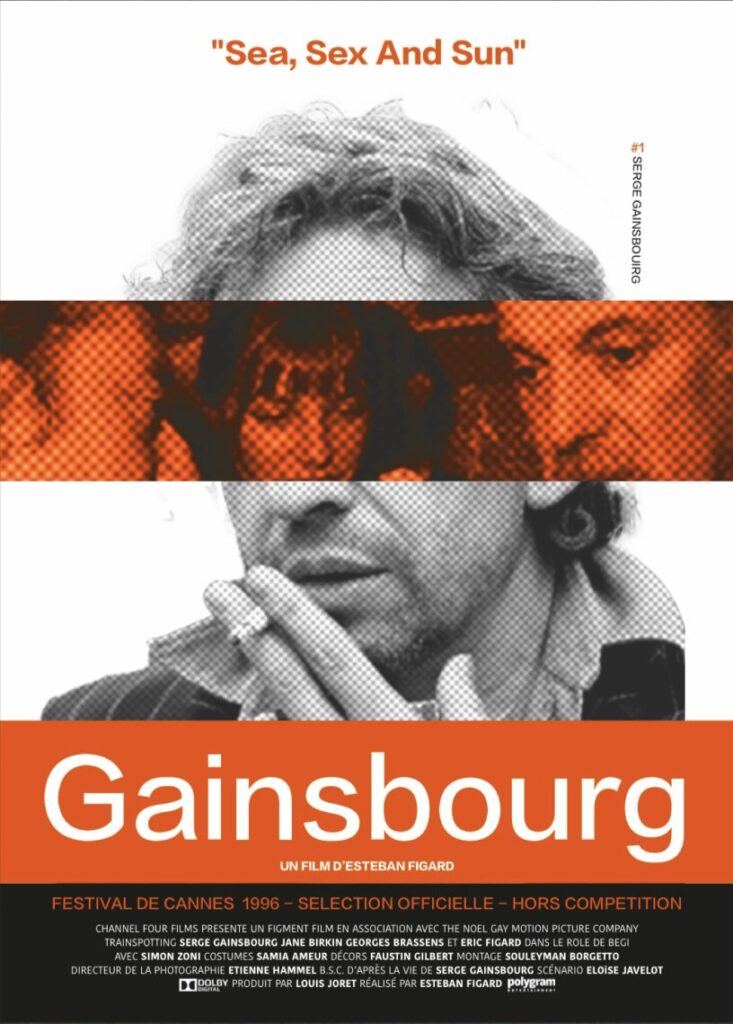 Reprise de la DA du film Trainspotting pour une nouvelle affiche spécialement conçue pour le cinéma avec le casting . Un film sur la vie de Gainsbourg .